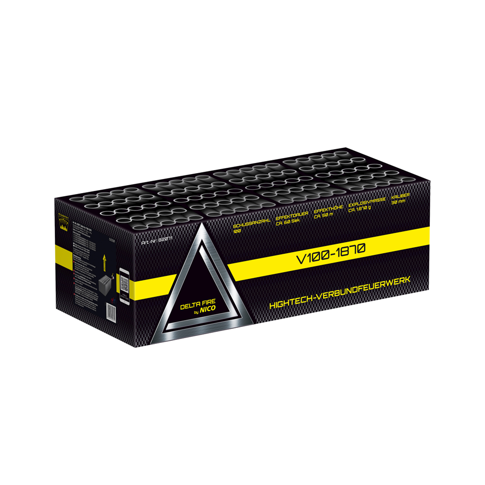 Delta Fire V100-1870, Verbundfeuerwerk mit 100 Schuss Nur Online Verfügbar!