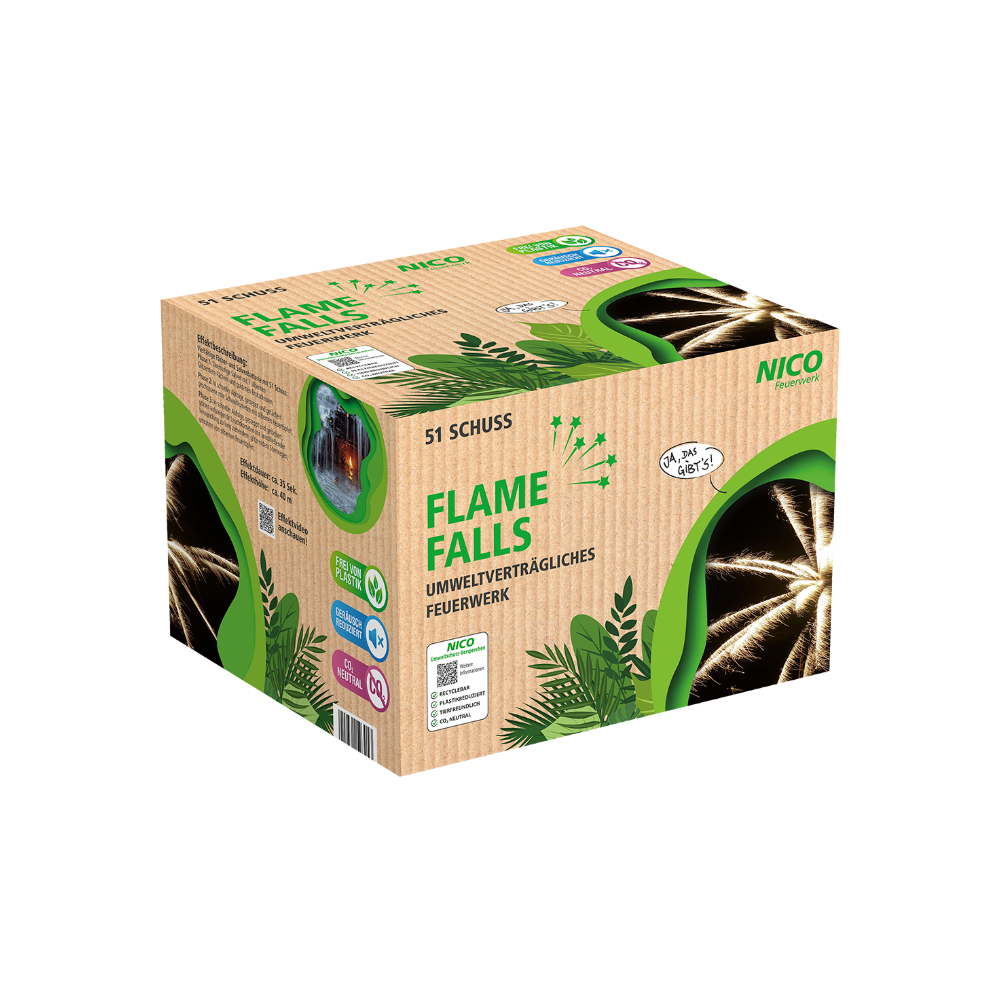 Umweltfreundliches Feuerwerk und magische Momente mit NICO erleben! Wir gehen den nachhaltigen Weg und kombinieren Entertainment mit Umweltbewusstsein. Flame Falls ist eines von unseren revolutionären Produkten, die klimaneutral, plastikfrei oder plastikreduziert, tierfreundlich und umweltschonend sind. Das exklusive Design passt zu den zeitgenössischen Entwicklungen und Umweltzielen. NICO übernimmt Verantwortung und lädt Sie auf eine spannende Entdeckungsreise ein.