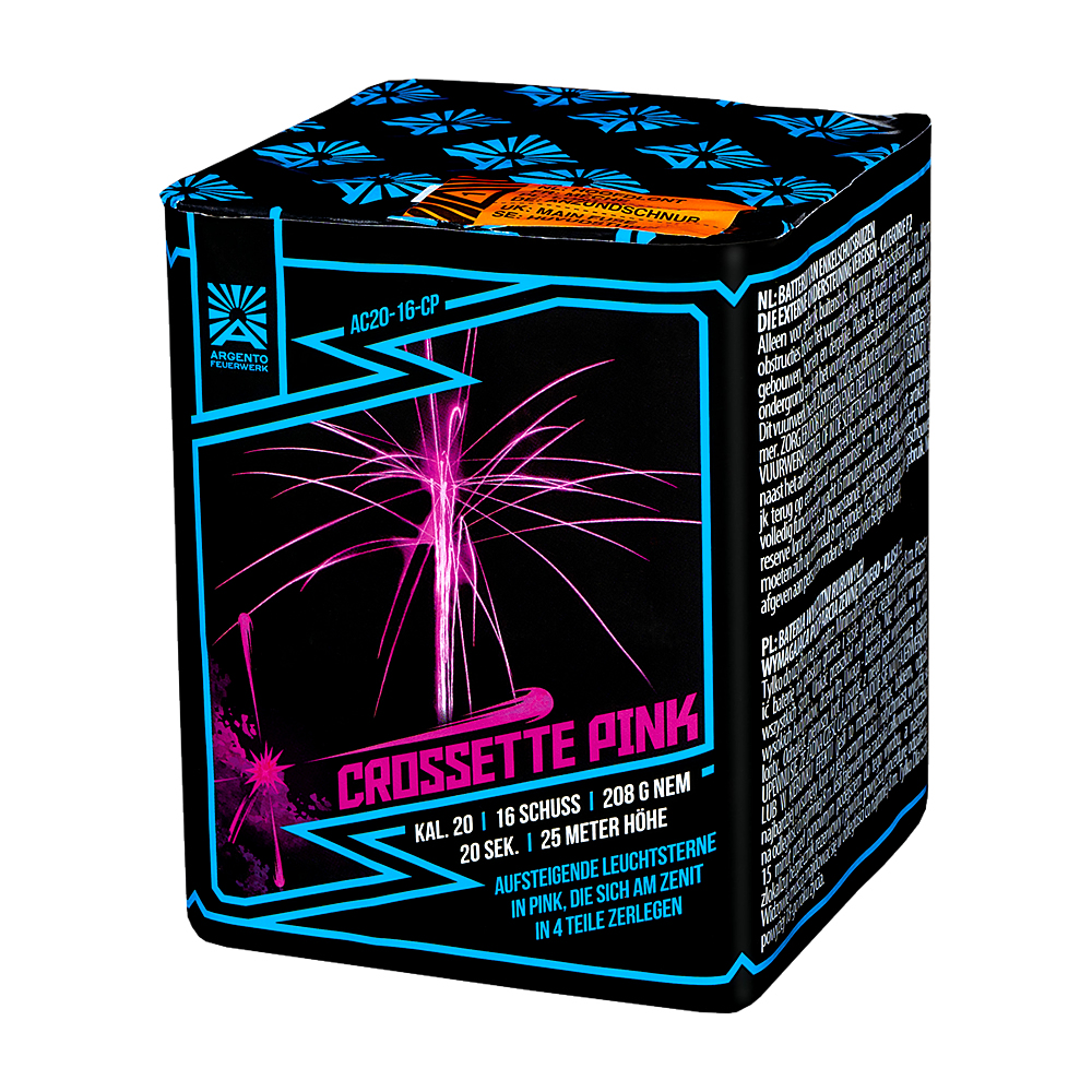 Diese 16-Schuss-Batterie schießt aufsteigende Leuchtsterne in Pink, die sich am Zenit in vier Teile zerlegen. Ein faszinierender Effekt, der für beeindruckende, farbenfrohe Explosionen sorgt und jede Show mit seinem spektakulären Abschluss bereichert.